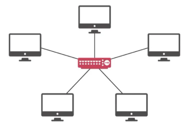 - 중앙에 있는 노드에 모두 연결된 네트워크 구성이다.