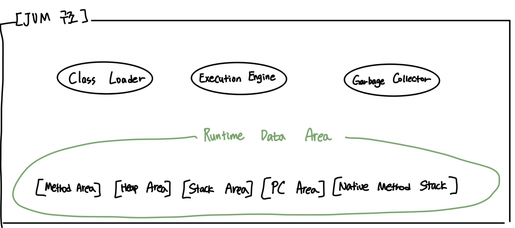 - 만들어진 바이트 코드(Test.class) 는 클래스 로더를 통해 JVM Runtime Area로 로딩된다.
