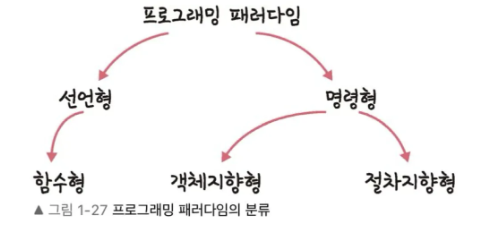 크게 선언형(함수형), 명령형(객체지향형, 절차지향형)으로 나뉜다.
