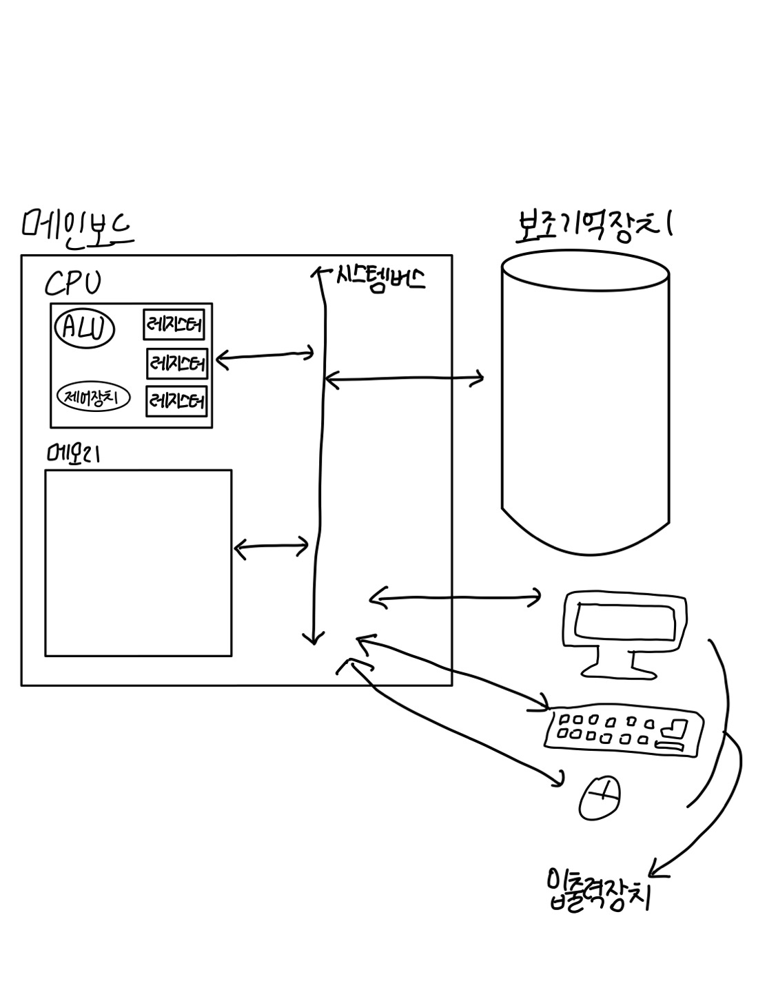 - 제어신호 : 컴퓨터 부품들을 관리하고 작동시키기 위한 일종의 전기 신호